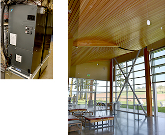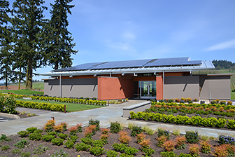 The new structure of Stoller Winery, completed in the fall of 2012, is a Net Positive Energy design utilizing over 400m2 of solar panels to provide 100% , and often more, of the building's power requirements. Using the same architect as the original winery, the tasting room was built using a large amount of reclaimed wood. It utilizes plenty of natural lighting, passive ventilation and Daikin VRV systems to provide year-round comfort for tastings and other special events. The huge walkout doors and windows of the tasting room are coordinated with the HVAC system to take advantage of the wonderful Oregon outside air.