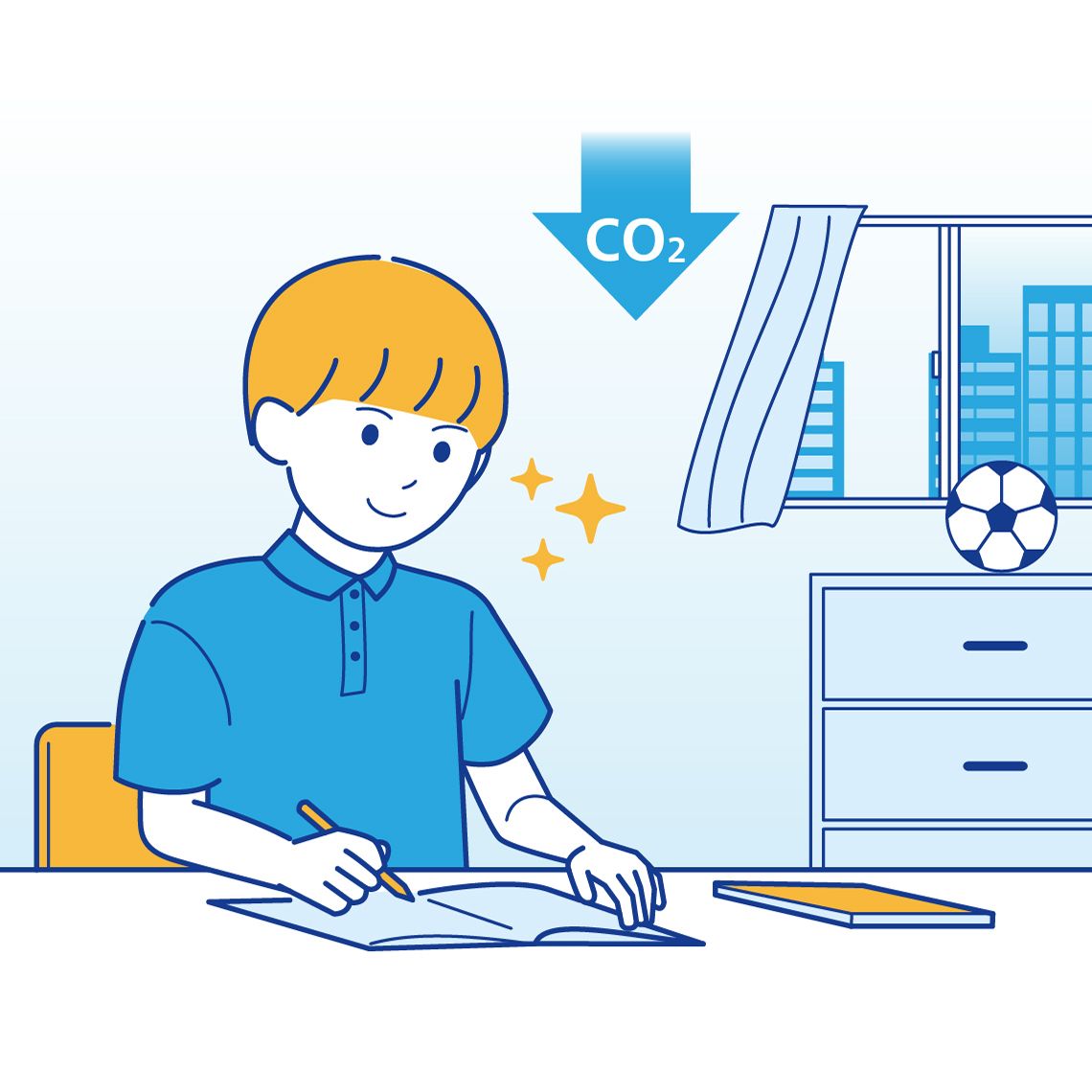 Did you know that you can improve concentration in a room simply by reducing the amount of indoor carbon dioxide? When children can concentrate on their studies, they can more easily learn new things and solve problems, allowing them to feel a sense of joy that creates a virtuous circle in which learning becomes even more fun. That makes it especially important to always keep the air clean in children’s study rooms by frequently ventilating them.