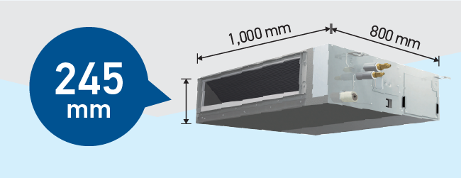 Lắp đặt dễ dàng ở các vị trí trần nhà hẹp với chiều cao chỉ 245 mm. Việc lắp đặt khả thi ngay cả trong các tòa nhà có trần hẹp.