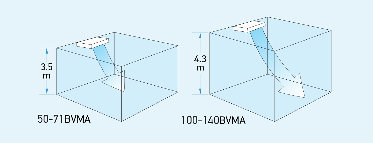 Dàn lạnh áp trần một hướng thổi gọn, luồng gió mạnh cho trần cao, hiệu suất cao nhờ các công nghệ của SkyAir Inverter.