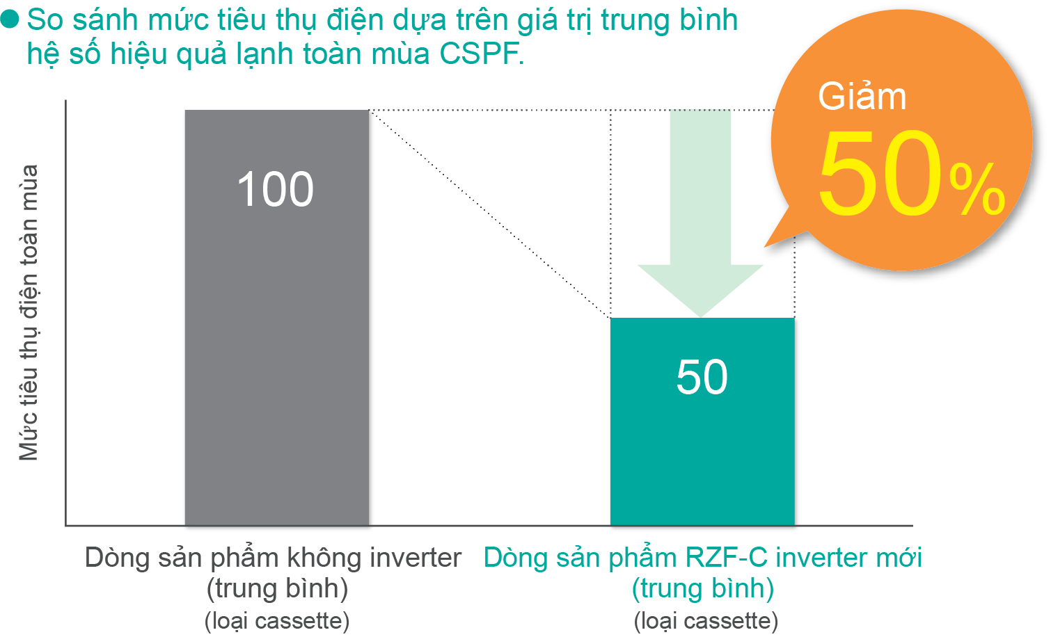 Công nghệ Inverter mới giúp giảm mức tiêu thụ năng lượng trong suốt quá trình làm lạnh hay sưởi ấm.