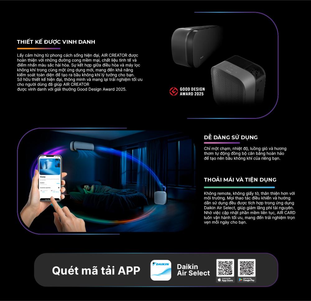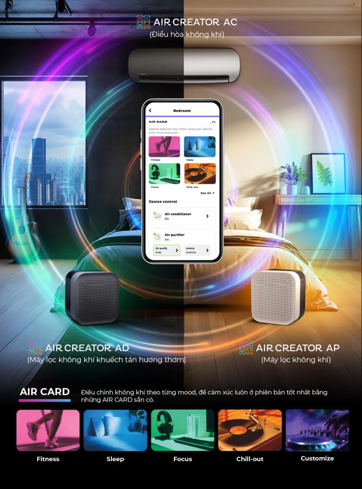 AIR CREATOR - Bộ đôi Điều Hòa 1HP và Máy lọc không khí khuếch tán hương thơm (Màu Đen)