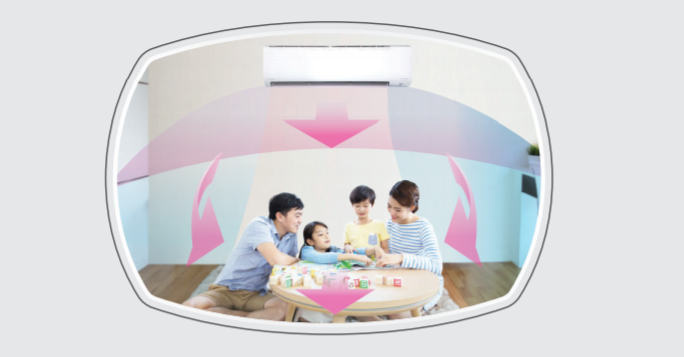 Kết hợp các cánh đảo gió tự động theo phương ngang và phương đứng để tuần hoàn luồng gió lạnh hoặc ấm đến tất cả góc phòng trong mọi không gian nhà. -