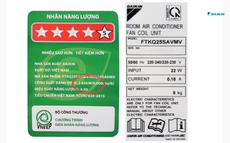 Máy lạnh Daikin Inverter 1HP tiêu thụ 2.65kW trong 1 giờ sử dụng