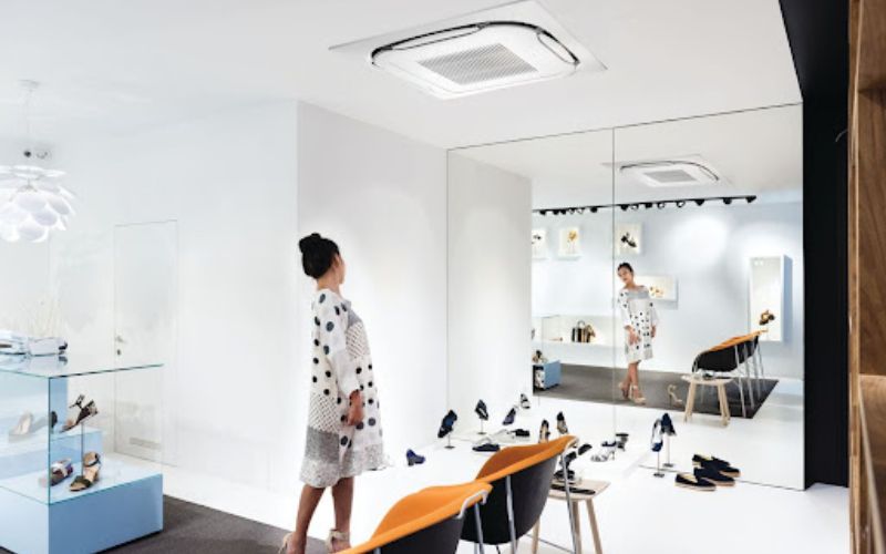 - Trung tâm thương mại và cửa hàng: Điều hòa âm trần cassette giúp duy trì nhiệt độ mát mẻ trong các khu vực bán hàng, làm tăng sự thoải mái cho khách hàng và nhân viên, đồng thời góp phần vào việc bảo quản hàng hóa.